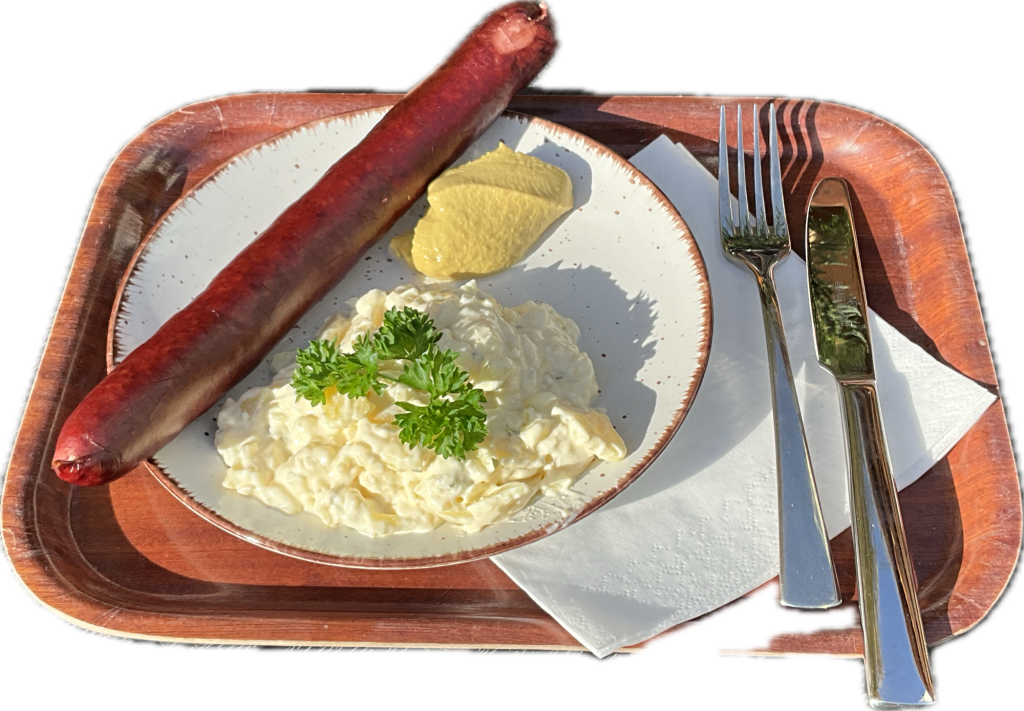 Rauchwurst, Bockwurst und Wiener Würstchen. Mit Salat, Brötchen oder Brot